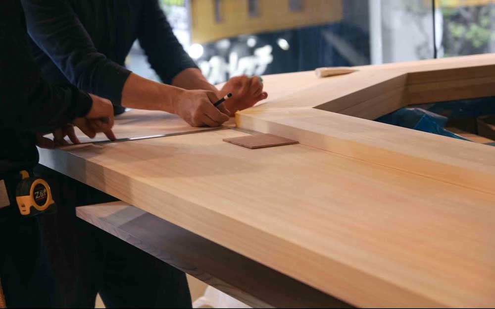 カスタマイズ製品:スプルース製のまな板、鍋のふた、ランプ;ヘムロック製の壁パネル、ロッカーなど。